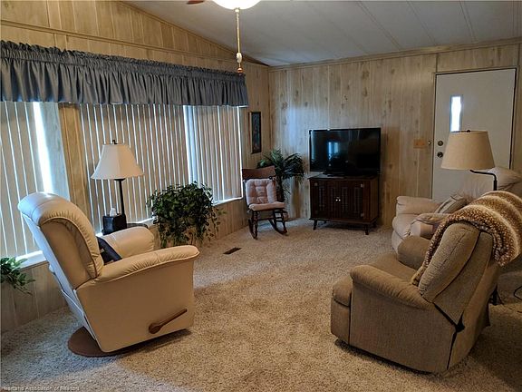 MOTIVATED SELLER: This is a well taken care of double wide on leased land in sought after 55+ Woodhaven Estates, located only a very short drive from Hwy 27. It has 2 bedrooms, 2 bathrooms, well equipped kitchen with double wall oven, island with GE glass top stove top, large living room, dining room as well as a family room/study next to the kitchen. Attractive wood laminate flooring in family/kitchen/dining. The Florida room has glass windows and also is home to a 9x12 storeroom. The property comes fully furnished and equipped and is move in ready. A 4-seater golf cart and a sit-on John Deere lawn mower are also included in the sale. For out of state seller convenience, everything is sold as is, inspections welcome. Roof is 2016. If you are looking for either a winter retreat or full time residence, you need to consider this one - check out the photos, what you see is what you get. Jacaranda Way is in a no pet part of the community and garbage collection is included in the monthly lot rent.