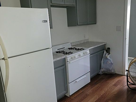 2 bed 1 bath home with new kitchen cabinets and countertops. New flooring in kitchen, bath, and entryway. New light fixtures throughout. New vanity and medicine cabinet in bath. Gas range and refrigerator included. Nice neighborhood on the east side!