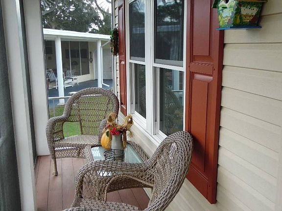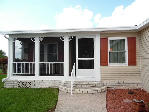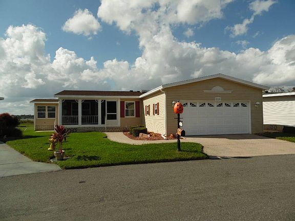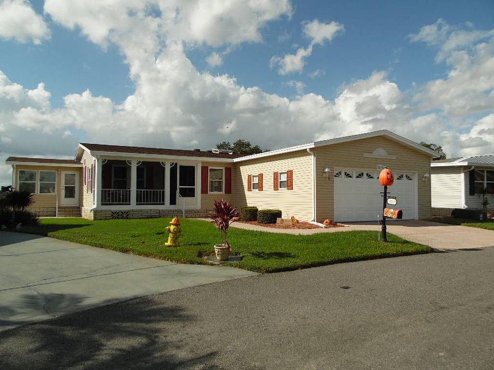 If you're looking for a top of the line home in a prime location, then look no further! This house has been meticulously cared for inside and out and is being sold partially furnished. Not only does this house feature a 1 1/2 car garage, but it also has a charming screened in front porch allowing you to enjoy the Sunny Florida weather during the cooler winter months. Located on the Golf Course and pond, you'll enjoy watching the sunset over Lake Haines in the comfort of your living room. With three bedrooms and two baths, you've got plenty of room to stretch out, relax, and enjoy the finer things in life. The large pass-through kitchen boasts granite counters, upgraded cabinets, and recessed lighting. Other updates include vaulted knockdown ceilings throughout the main living area and bedrooms, granite counter vanity in hallway bathroom, laminate and tile flooring, newer appliances (including washer & dryer), New roof in 2019, and new a/c in 2012! One attribute of the 3rd Bedroom/Office is the large double murphy bed/desk unit that is not only a practical space saver but also functional. Purchase includes golf cart plus ONE YEAR FREE GOLF! Homes are selling fast, and this won't last long-contact our onsite Resale Office today to schedule a showing!