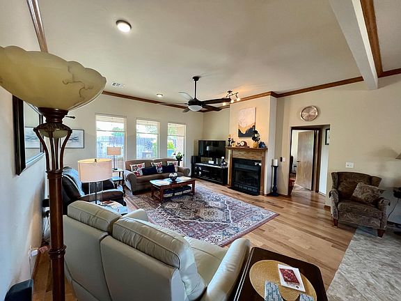 Wow this is such a nice home! Tons of natural light flood into the main living area, dining & kitchen. Kitchen has been nicely updated with quartz countertops, RO system & a gas stove. Large main bedroom offers easy access to the back patio & has a beautiful en-suite bathroom with a large shower, double sinks & a built in vanity. 2 bedrooms are split between a jack & jill bathroom with double sinks. The office would make a great 4th bedroom, playroom or craft room. Bonus features include a new water well with sprinkler system, storm shelter, water softener, plantation shutters on the front windows, new carpet in bedrooms, hardwood floors & a new HVAC unit in 2021. Backyard is so quaint & private with a covered patio & beautiful landscaping.