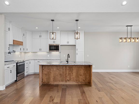 Beautiful craftsman style Third Day Built walk out basement in desired Creek Bridge Estates is move in ready! This four bedroom three bathroom home has meticulous beam work in the cathedral ceiling in the living room. Floor to ceiling custom kitchen cabinets and a spacious dining area. The main floor offers a split bedroom plan with a master suite including a soaking tub. The covered deck offers view of mature trees. The basement includes two additional bedrooms and a bathroom, a huge second living space, wet bar, storage space, and a safe room. Bring an offer! Professional pictures coming soon.