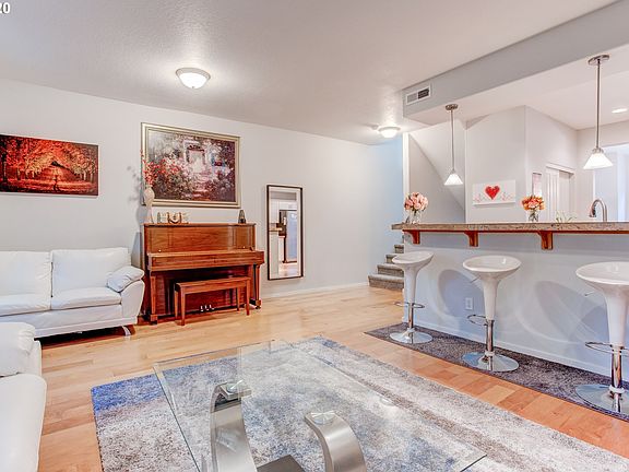 Updated townhome in a quiet and nicely maintained community. New white shaker cabinets in the kitchen and bathrooms, and hardwood floors in the open kitchen, living, and dining rooms. This unit backs to a greenspace with forested views from the master bedroom. Enjoy both an upper and lower deck. Great location with quick access to regional employers and Sunset Highway.