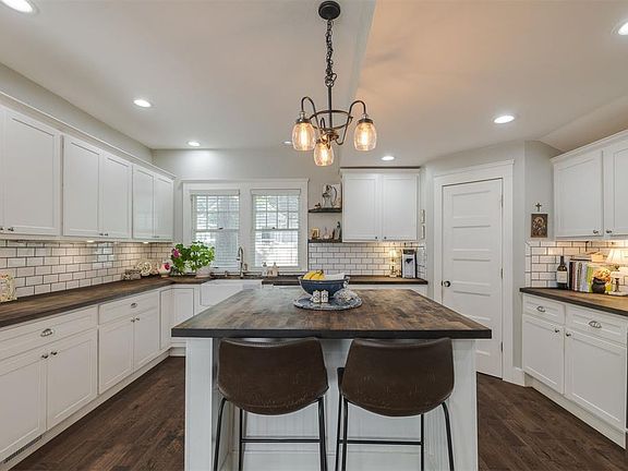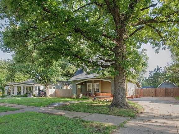 This Victorian home, a testament to Oklahoma's rich history, offers a unique blend of classic charm and modern convenience. Built on land that was acquired during the fervor of the 1809 land rush, it stands as a preserved piece of the past, mere steps from the vibrant Plaza District. The home's exterior, with its original cedar shake shingles, has been meticulously maintained, reflecting the home's historical integrity. Inside, the preservation of original features harmonizes with contemporary updates. The kitchen, a modern take on farmhouse style, is equipped with a gas stove, under-mount lighting, and butcher block counters, ideal for both cooking enthusiasts and those who appreciate the beauty of design. The thoughtful updates, such as new electrical wiring, PEX piping, and steel beam-reinforced floors, provide peace of mind and structural integrity. The primary suite, complete with an en-suite bathroom featuring built-in storage and a laundry bin, offers comfort and convenience. Meanwhile, the additional bedrooms share a hall bath with original claw foot tub. NEW DUCTWORK and HVAC on the second floor, new sprinkler system in front and back as well as a new sewer line has recently been installed.