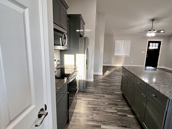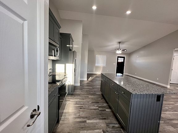 This home is like new construction without the wait!! Verdi model floor plan with granite counter tops, grey soft close kitchen cabinets and drawers,vinyl plank floors in the kitchen, laundry and baths, vaulted ceiling, central air, all stainless steel appliances including: microwave, electric smooth top range, and refrigerator that stay with the home. The living room, kitchen and dining room are open concept and separate this split bedroom floorplan. Main bathroom has a tub shower combo with single sink vanity. The large primary bedroom has a walk in closet with built in shelving and private bathroom with double vanities and a tub shower combo. Looking for a new construction home that is ready to go, you have found it! Come take a look today.