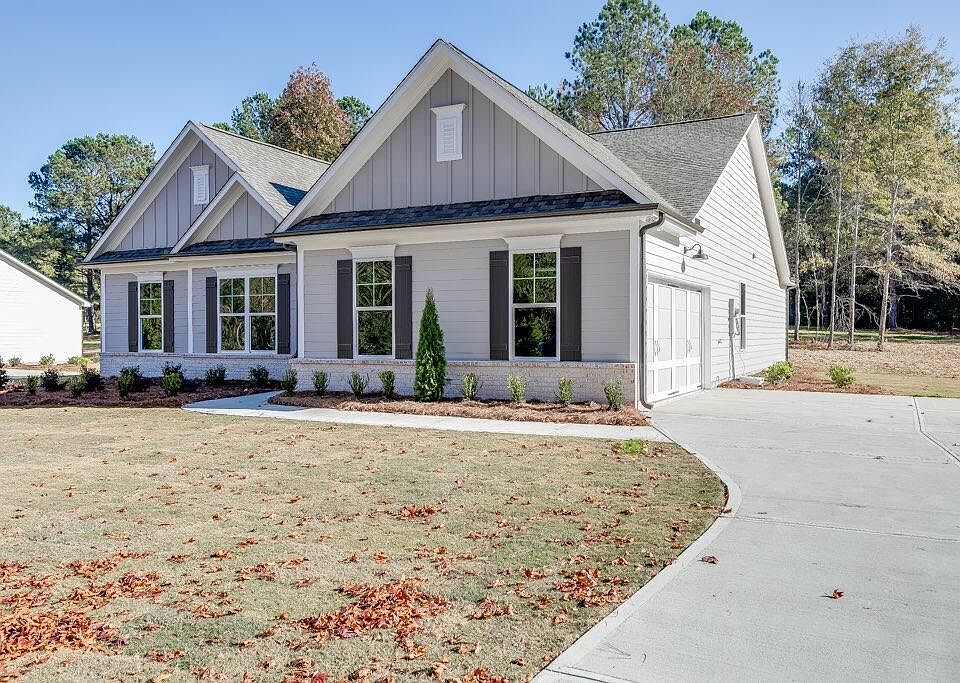 This ranch home features 4 bedrooms, 3 baths, a side entry 2-car garage, covered back porch, loads of privacy, & more! The oversized kitchen island gives way to an open concept living area complete with nature gas fireplace. The primary suite is privately tucked away, features a luxurious "spa-like" tiled primary suite bath shower & large walk-in closet. Fire your grill up and enjoy the outdoors with the oversized covered back patio overlooking your private backyard space perfect for family gatherings & game day celebrations! Introducing The Estates at Nunnally Farms, a 10 Home Contemporary Farmhouse Estate Lot development located in Walton Co, GA with LARGE FLAT LOTS & NO HOA!