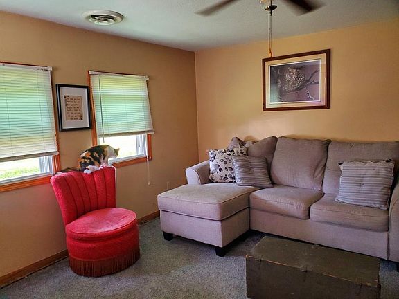 Cute home on large corner lot features new roof and siding in 2019, new windows in 2013, new kitchen flooring in 2019,newer garage doors and hot water heater.