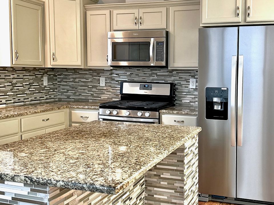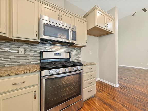Covered backyardSoaring ceilingsKitchen granite countersStainless steel appliancesWarmly appointed lightingOpen floor planBeautiful backsplash