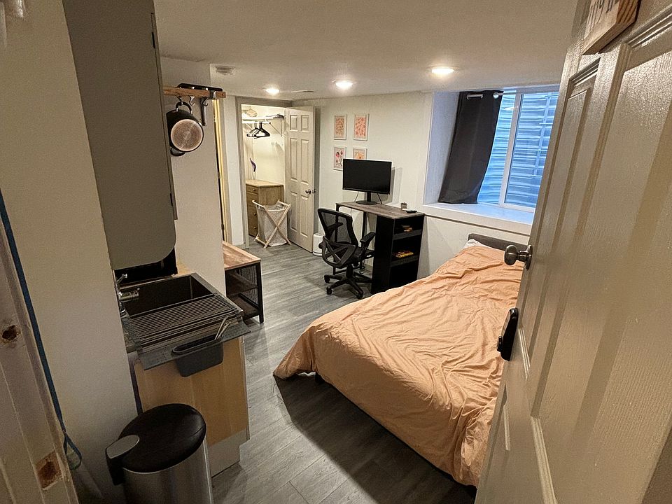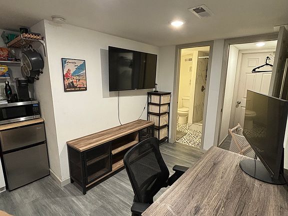 Cozy private entrance furnished Highlands basement studio with kitchenette and a 3/4 bathroom. Extremely walkable, W 33rd between Tejon and Vallejo st. Flexible mid-term available. The rear entrance to the house leads to private entrances for 2119 1/2 and 2117 1/2. Upstairs above the unit is a washer/dryer laundry room with some room for storage. This closet is accessible from the upstairs unit, but the laundry is not shared (upstairs has it's own laundry). This basement studio is ideal for someone who lives/works in LoHi or needs temporary housing in LoHi. It is small but quiet and cozy. Flexible mid-term lease available. No utility costs.