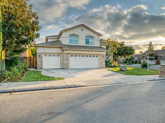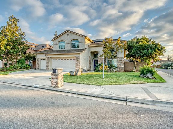 Highly sought-after Granville Van Ness Estates home located on a corner lot close to shopping, dining & in the Clovis School District. This beautiful 5Bd/3Ba home has plenty to offer starting w/ high ceilings, 2 fireplaces, newer carpet, newly installed front door, large sun lit windows & a fresh coat of paint. The first floor features 2 bedrooms, one of them w/ full bath, formal dining room & spacious family room/kitchen combo in an open floor plan concept w/ a cozy fireplace. The Kitchen features granite countertops, center island, walk-in pantry, electric cooktop, built-in oven, dishwasher & plenty of cabinets for your storage needs! Retire to the Primary Suite boasting 2 large walk-in closets, dual sinks, separate shower stall & soaking tub, perfect to relax in after a long day. Invite guests over to enjoy the backyard under the huge covered patio & make your way over to the fire pit during the cooler season overlooking the sparkling pool.