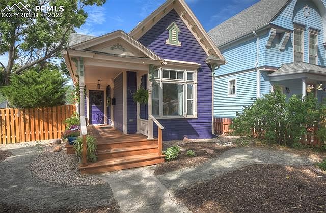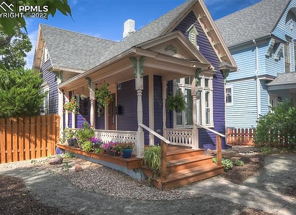 This is a super special west side charmer! This move-in ready beauty has all modern comforts but retains the allure of a historic home. High ceilings, original woodwork, professional landscaping, and a front porch with hand-crafted balusters in the heart of Old Colorado City. An easy walk or ride to the farmer's market, dining, trails, Territory Days, and downtown. The home has a one car garage plus gated off-street parking for another car. Newly painted inside throughout and recently painted externally to keep with the vibe of the west side. The kitchen has stainless steel and black appliances along with granite-looking countertops and a hands-free kitchen faucet. The master bedroom is spacious and includes a walk-in closet and ceiling fan. The upstairs loft bedroom has track lighting, built-in shelving and a skylight for plenty of natural light. The large living room has a cozy free-standing gas fireplace and ceiling fan. The front room, with its oversized windows and beautiful window treatments makes a great office, dining area, or just additional living space. Your choice! Washer and dryer are located on the main floor. Outside you will find an automatic drip system, professional xeriscaping, roses, lilacs, raspberry bushes and a mature ash tree that provides shade all summer long. The backyard also offers a flagstone patio, a comfortable deck and a storage shed perfect for your bicycles. In the cellar you will find built-in storage shelves, a wine rack, a utility sink, and room for a chest freezer. The plumbing has all been modernized with PEX. Electrical is updated to 200 AMP. Come check out this clean, comfortable, well-maintained historic home!