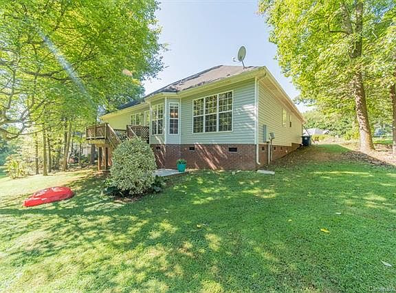 Welcoming single level home nestled in beautiful cul-de-sac setting. This home offers almost half an acre lot w privacy, quiet streets and low maintenance exterior. Desirable split bedroom layout w master on one side and secondary bedrooms on other end of the home. Upon entry notice the open layout and soaring ceilings in dining and great room. Large formal dining area. Open great room w vaulted ceilings and gas fireplace. Kitchen with eat in breakfast nook overlooking private backyard. Master suite w vaulted ceilings and deluxe bath featuring dual vanities, shower and soaking tub plus large walk in closet. Ample sized secondary bedrooms with hall bath. Enjoy the fall nights on the back deck. Private rear yard boarded by trees for complete privacy. Good usable space for the kids or pets to play. Storage building for all the outside extras and tools, plus great storage in the walk in crawl space. Fabulous Matthews location close to shopping and easy access to I485.