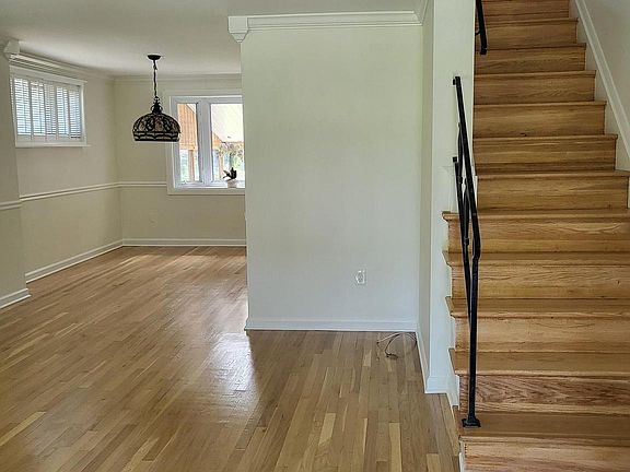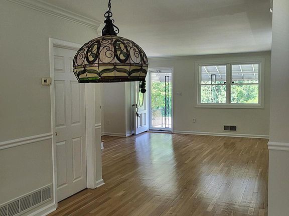Cute as a button end of group porch front brick townhome on non-thru street. Shuttered windows gives this home that cozy cottage feel. Freshly painted in neutral colors throughout. Updated kitchen with tile backsplash, granite counters, stainless appliances and access to large covered, screened in porch overlooking newly landscaped rear yard. Bow Window in dining room and beautiful crown and chair rail moldings. The extra windows on the side of home add natural light throughout. Refinished wood floors on main and upper level. Lower level recreation/gathering room with new carpet, half bath, utility room and laundry area. Walk-up to screened in rear patio. Hot tub is included, AS IS. Three bedrooms and full bath on upper level. Bath has tub shower combo with glass enclosure and has been nicely updated. This home is move-in ready.