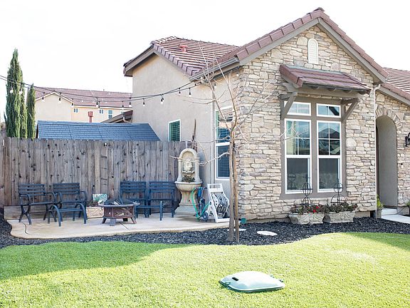 Honey Stop the Car!! Truly stunning home in Bella Vista features 4 bedrooms, 3 baths, car garage, and possible RV parking. Low maintenance front yard with artificial turf. Cute sitting area with fountain, firepit and accent lights to enjoy year-round. Upon entering the home, you will find lovely wood laminate flooring and plantation shutters throughout. Front guest bedroom with adjoining full bath is great for guest! Entertain all your family and friends with the great open floor plan and the cozy gas fireplace to enjoy on chilly nights. Well equipped kitchen features large island with sink and additional seating. Second and third bedroom are generously sized. Hall bath also features dual sinks and separate toilet and shower room. Laundry room conveniently located near bedrooms with sink. Owners' bedroom and oversized ensuite features ceiling fan and canned lights with dimmable and color changing feature, all controlled by Alexa. Owners ensuite has separate his and her vanities with large soaking tub and tile walk in shower. Zero fights on closet space, with this his and hers walkthrough closet. The door off the living room opens to a great covered patio with stamped concrete all around the home. Unwind the daily stress with your own private hot tub with built in speakers and a TV to enjoy under a covered pergola! Blank canvas backyard to design a custom pool of your dreams. You a centrally located between everything! Minutes to Table Mountain Casino, between Fresno and Clovis, and in the well desired Clovis school district! This home is truly an entertainer's dream, and ready for a new family to call it home. Don't miss out, schedule your showing today!