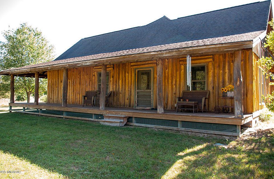 Discover where yonder is - a place far from commotion and congestion, a stretch of scenery where quietude and craftsmanship blend together in perfect balance. Welcome to 20 acres of uninterrupted Michigan perfection, where a 3 bedroom 2 bath log home stands as an expression of timbered artistry. Burrow within the expanse of a wrap around porch and gaze upon an acred sea of lush landscape. Inside, behold an interior enveloped in wooden beams, planks and soaring rafters. Glide across maple hardwoo d flooring to lounge beside the fireplace, as the aroma of coffee wafts throughout the first morning hours. The charismatic invitation of this countryside estate is reminiscent of simpler days filled with ease and inspiration.