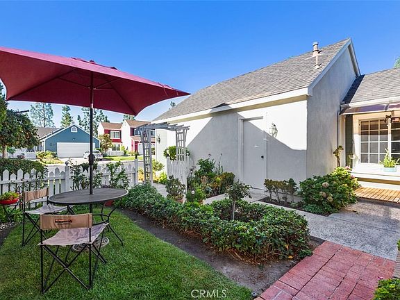 Charming SINGLE LEVEL home with SPACIOUS BACKYARD and peek-a-boo view of the mountain top! Perfectly nestled on an interior street in the coveted Evergreen Ridge community of Mission Viejo. A white picket fence with gated arbor creates an inviting entry into a cottage-style garden. Once inside the home you’ll be welcomed into a light and bright main room with Bay window, cozy fireplace and high ceilings. Beautiful wood flooring creates a rich tone in the interior and spans the main living area and bedrooms. In the large kitchen you’ll enjoy landscaped views of the backyard and distant mountain top. The on-trend gray and white kitchen offers stainless steel appliances, recessed lighting, and eat-in dining area. In the primary bedroom you’ll find two mirrored closets and extra cabinets for abundant storage and an ensuite bathroom with walk-in shower and dual sinks. The secondary bedroom is generously sized and fitted with mirrored closet doors. Separating the two bedrooms is the hall bath with tub and shower. The private backyard is perfect for barbequing and outdoor entertaining, gardening, playing fetch with the dog or simply relaxing under the open, blue sky. This home is conveniently located with walkability to shopping, dining and Trabucco Hills High School. Enjoy an active community-centered lifestyle with membership to Lake Mission Viejo offering residents swimming, boating, fishing, outdoor movies, special events and summer concerts. LOW HOA, LOW TAX RATE, NO MELLO-ROOS.