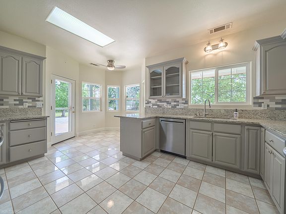 Elegance and Country combine in this wonderful home on 2.49 acres. House has a nice floorplan with open living area and an additional 500 square foot conditioned insulated Sunroom. Stainless Steel appliances, granite counters, tile backsplash, tile floors, and a breakfast nook. Kitchen has a pass- through to dining room. Newer light fixtures throughout. Light & bright, vaulted ceilings with skylights and lots of windows. Laminate and tile flooring, with ceiling fans. Central Heat/Air plus woodstove. Window coverings included. Primary bedroom has vaulted ceilings and 2 walk-in closets. Primary bath has custom natural tile shower. Large utility room with storage and sink. The large, attached garage is 924 square feet, attached to that is a large, enclosed RV garage with... See ''More'' roll up doors. Property is completely fenced and crossed fenced (horses and animals OK here). Rear stamped concrete patio is wired for hot tub and has a Sunsetter sunshade. Landscaping front and back, with irrigation and drip line all around There are hose bibs in field as well. Large graveled driveway has 2 entry gates, one with automatic entry gate. Plenty of room for RV or boat parking & there is also a metal boat cover! Leased solar has 22 panels and is at a set rate of $194 per month. Back up generator is included. Comp roof and rain gutters were installed in 2019. Home has Hardi-Board siding. Chain link dog-run next to house. There are several storage sheds also. Home comes with the 2 gun safes installed in garage, and new big screen TV w/ fireplace TV stand in living room. All this in a great area that is close to colleges and churches,and for a great price!