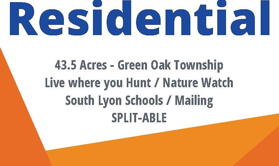 The BENEFIT of this property... spectacular details follow... The BENEFIT of this Single-Family Home build-site / Hunting Land / Nature Lovers Land *** 43.50 Acres *** Located in Green Oak Township with South Lyon Schools and South Lyon Mailing. Large nature filled land with ample mature trees, expanded wetlands, some rolling terrain, wildlife, elevated build site (access near middle sign), and multiple peaceful private setting. Access onto N. Dixboro Road (between 8 Mile and 9 Mile roads) allowing paved road access. The photos are helpful, but you must see this treasure in person to truly appreciate everything it has to offer. Drive up into the lot via the partially cleared path (use all-terrain vehicle). Go from the hustle & bustle of the city to peace and tranquility. Well Needed, Septic Needed, Perc Sites unknown (Seller will require ample time for buyer to evaluate), Electric at street, Natural gas at street, all other utilities at street. LISTING INCLUDED TWO RESIDENTIAL PARCELS, previous owner had plans showing additional splits. Property is being sold as one large parcel with no splits in place. Excellent location, yet convenient to Northville, Ann Arbor, South Lyon, Brighton and other areas. Access to major freeways: US-23 and I-96 for easy commuting to Ann Arbor, Lansing, DTW, Detroit and all points far and near. A short drive from everything you need including shopping, community services, restaurants, parks, churches, schools, trails, parks, lakes and so-on. Do you desire a walkout/daylight basement? This lot has what it takes! Do you want a lot of land? Additional Garage? She-Shed? Pole Barn? Organic Garden? Ability to Hunt? Welcome to the property that can make these wishes a reality! This lot is excellent for the person that wants a lot of land to build a home, build a cottage, or just have a lot of land for nature, hunting, investment, etc. NEED A BUILDER? Set an appointment to talk with a local premiere builder / sales team for a free consultation & TOUR current project. Several plans to view from Ranch, Cape Cod, Colonial & styles such as craftsman, rustic, modern, barn-dominium, farmhouse, green technology & others. Big or Small or even Medium, this location offers many possibilities for your dream home. SPEC HOMES AVAILABLE TO TOUR! Download other details from the MLS. Privately owned lot, please make an appointment to walk the property. SECURE THIS LAND TODAY. Need help making the transition from your current home to a NEW home, call for various lending options and free market analysis. New Construction, Conventional, Land Loan, we have great lenders to serve you.