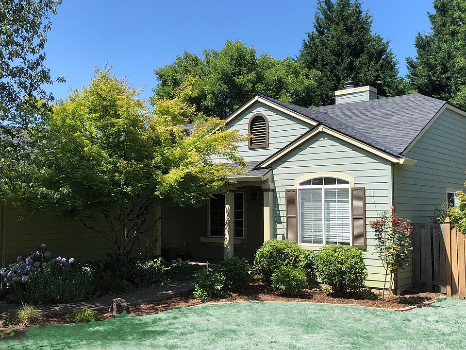 Beautiful open living room and Kitchen ideal for entertaining with a deck the width of house offering outdoor living during warm weather. Nearly every part of house updated in 2017 including complete kitchen remodel, granite counters, updated cupboards, hardwood floors, new window and baseboard trim, new doors, new furnace, new paint inside and out, new high efficiency light fixtures, new backyard deck, new fencing, and new roof. Kitchen entry wall opened and plant shelf removed for more spacious updated look. 55" Flat Screen TV included in rental. Tenant responsible for cable and/or internet connection. Perfect location for Intel and Nike with shopping, dining, walking / bike paths nearby. On a quiet dead-end road opening to a multi-acre green space that is less than a minute walk from the front door. Tenant pays utilities, no pets, no smokers