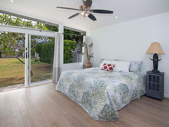Upgraded gourmet kitchen with quartz counters, hardwood cabinets & stainless steel appliances. Primary & secondary bedrooms/baths are on the main level. Large back yard with endless possibilities. A third of a mile to Kailua beach. Freshly painted inside and out with ceramic tile and engineered hardwood flooring. New aluminum roof and an owned 24 PV panel system. Great indoor/outdoor living with glass sliding doors in each bedroom and the living room that open up to lanai and patio space. PETS considered with additional rent/deposit. No smoking Owner pays utilities (PV on the roof brought electric bill to $180 for family of 5) 1 carport parking with street parking available. No smoking Pets considered with additional rent/deposit
