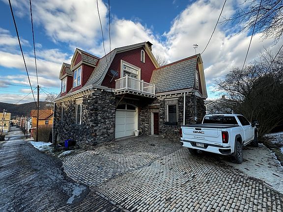 Beautiful River Stone and Cedar Shake Historic Carriage Home located on the SSOC. Myers Custom Cabinets in the Kitchen and Bathroom. Bedroom/Dining room has a window seat with storage. Living Room/Dining area boasts a built-in bookshelve, gas stove, door to the balcony. Large bedroom off living room also with a window seat and large closet. All closets are lined with pressed cedar. Lower level consists of a 3/4 bath and two other rooms that could be bedrooms, office, etc. A very well maintained, unique home, lots of windows, arch cellar. Slate roof, chimney and rest of the home has had regular maintenance. Lower level laundry with utility sink. This property was in Oil City's Victorian Houses, free copy with the purchase of the property. Be sure to request the 3D Matterport tour. There is also a 2D Floor plan Available upon request.