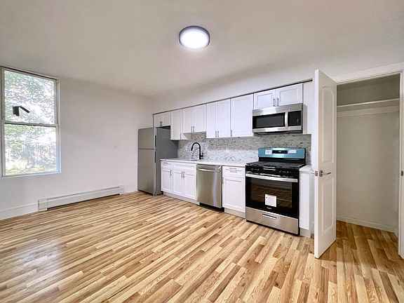 Newly renovated apartment building in the Soho West area - just south of Hoboken. Laundry in basement. The apartments feature calacatta quartz countertops, white shaker cabinets, and stainless steel appliances including dishwasher, gas stove, built-in microwave, and refrigerator. This three bedroom apartment has a separate dining room as well as large eat-in kitchen. With supermarkets close by such as Acme and Target, the Newport PATH station and Downtown Washington St in Hoboken less than one mile away, this location is great for a daily commuters. Available ASAP