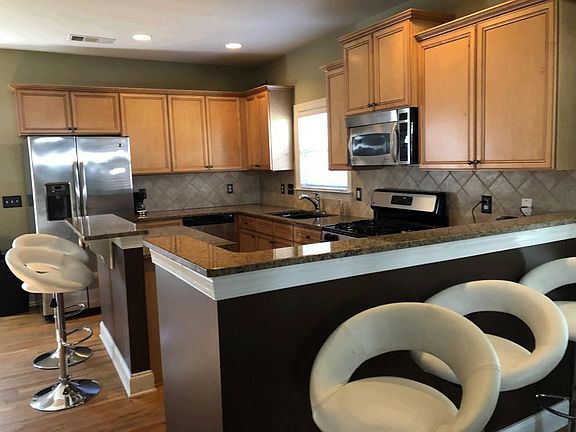 - Kitchen Features: Breakfast Bar, Cabinets Stain, Eat-in Kitchen, Pantry, View to Family Room, Stone Counters