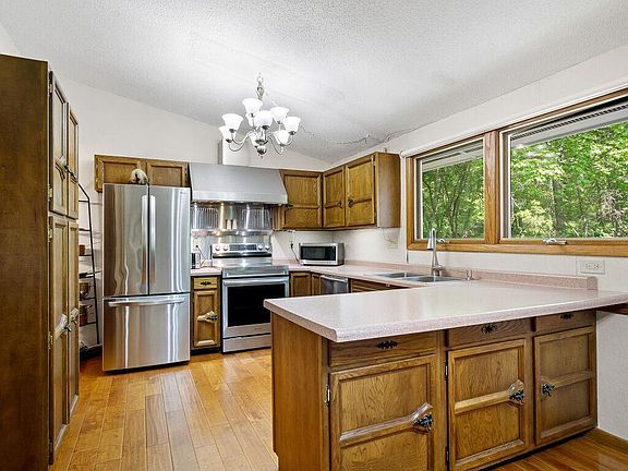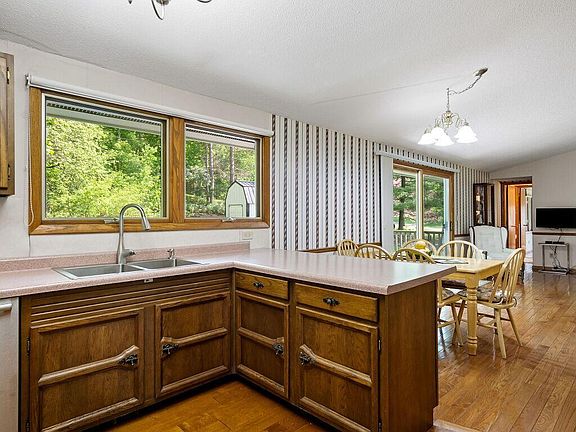 Updated 3 Bedroom/1.5 Bathroom Nestled on a Park Like .52 Acre Lot! This Home Features Vaulted Ceilings in Living Room, Kitchen, Dining Area & Family Room, Open Concept Kitchen to Family Room, Wood Floors Throughout Main Level Except for Bathrooms, Real Wood Fireplace, Stainless Steel Appliances & Large Lower Level Rec Room & Metal Roof! Updates Include Fresh Interior Paint, New Oak Wood Floors in Foyer, Living & Dining Rooms, Most Light Fixtures. Large Patio Doors Off Family Room Lead to a Private 14' x 20' Composite Deck with Retractable Awning. 2 Car Attached Garage is Insulated & Heated. Store Your Lawn Items In The New 10 x 12 Metal Shed. Property is Located on a Dead End Road, Easy Access to I-94(Exit 32) & Within an 1 Hour Drive to Woodbury MN.