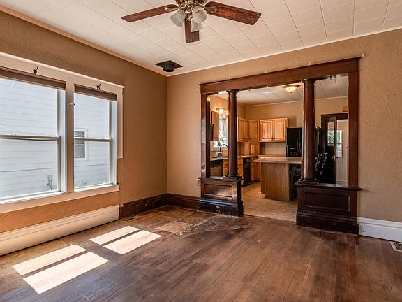 Charming 1/2 story home! Situated on a quiet street, this cozy home is ready for its new owner! All the original charm remains, you will love the condition of the original woodwork in this home, while also appreciating the updated, modern style kitchen complete with island! Gorgeous hickory cabinets, newer counter tops, updated appliances and floors make this a fabulous space to entertain! Cozy main floor also offers a bedroom, full bath, great front porch and easy access to the yard! Upstairs, boasts an oversized bedroom and amazing space for walk- in closet! Nice sized yard is partially fenced and has so much potential! Don't miss the 2 story garage, which provides great main level storage, and a loft above!!!