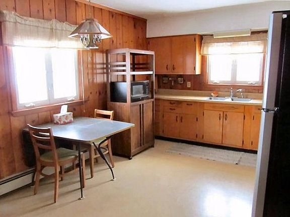 This home has plenty of space & storage throughout! Furnishings currently in the home can stay if a buyer wants them. Hot water heat boiler system, there are 3 zones for heating. Window air unit is usually placed in the main floor family room. Kitchen appliances remain including the washer & dryer. MBR has 3/4 bath, however, the representative for the seller believes the shower does not work. Near-new vinyl deck off the kitchen, vinyl siding on the house, detached double garage, some vinyl replacement windows. This home is being sold as is condition as the representative for the seller has not lived in the home for many years.