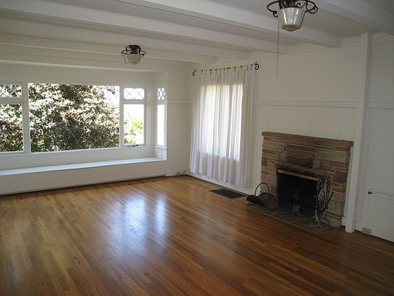 Old-world charm prevails in this 3 bedroom 2 bathroom duplex home. Originally part of a cedar shingled historic home, this unit has approximately 1,350 square feet of living area on two levels. The front porch boasts views of Monterey Bay and the city lights. The living room has a modest bay view and features a wood-burning fireplace, hardwood floors, a window seat and beam ceilings. Kitchen is spacious and includes a breakfast nook, refrigerator, dishwasher, disposal and Wedgewood gas range/oven. Laundry room has washer and dryer provided as a courtesy (no warranty). This home has a one-car garage with garage door opener and remote control. Garage may not fit large vehicles, but it has PLENTY of extra room for storage. Rent includes gardening and sewer. No smoke/pets. There is another unit with a separate entrance at the left side of this home that is not included in the rental. Available September 6th.