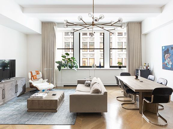The only residence available for rent at the iconic 212 Fifth Avenue, featuring 11-foot ceilings and 1,538 square feet. At this opportune moment, residence 5C is now offered for sale. As you enter the loft, you are greeted with a spacious foyer that flows effortlessly into the massive 20 x 20 great room. 11-foot ceilings and a full wall of large bay windows are equipped in the great room for natural light. The eat-in chef's kitchen features state-of-the-art Gaggenau appliances and a massive Calcutta marble island perfect for entertaining. The kitchen is also equipped with Ash Millwork cabinets. Each of the bedrooms is situated on opposite ends of the home with luxurious ensuite baths. Additional features of this exquisite residence include an additional powder room, multi-zone heat and air, vented kitchen and bathrooms, smart home technology, solid oak flooring, beautiful marble, and custom cabinetry. The bathroom finishes include honed, polished and fluted marble and hand-dyed sycamore cabinetry. The well-known interior designers Pembrooke and Ives have created a gorgeous residence with exceptional attention to detail. 212 Fifth Avenue is an iconic neo-Gothic early skyscraper converted to forty-eight expansive condo residences. Services and amenities include a 24-hour doorman, concierge, premier building manager, valet parking, Jay Wright-designed fitness center with adjoining yoga studio and private treatment room, golf simulator, screening room, boardroom, game room, children's playroom, lounge, and cold storage for fresh food deliveries.