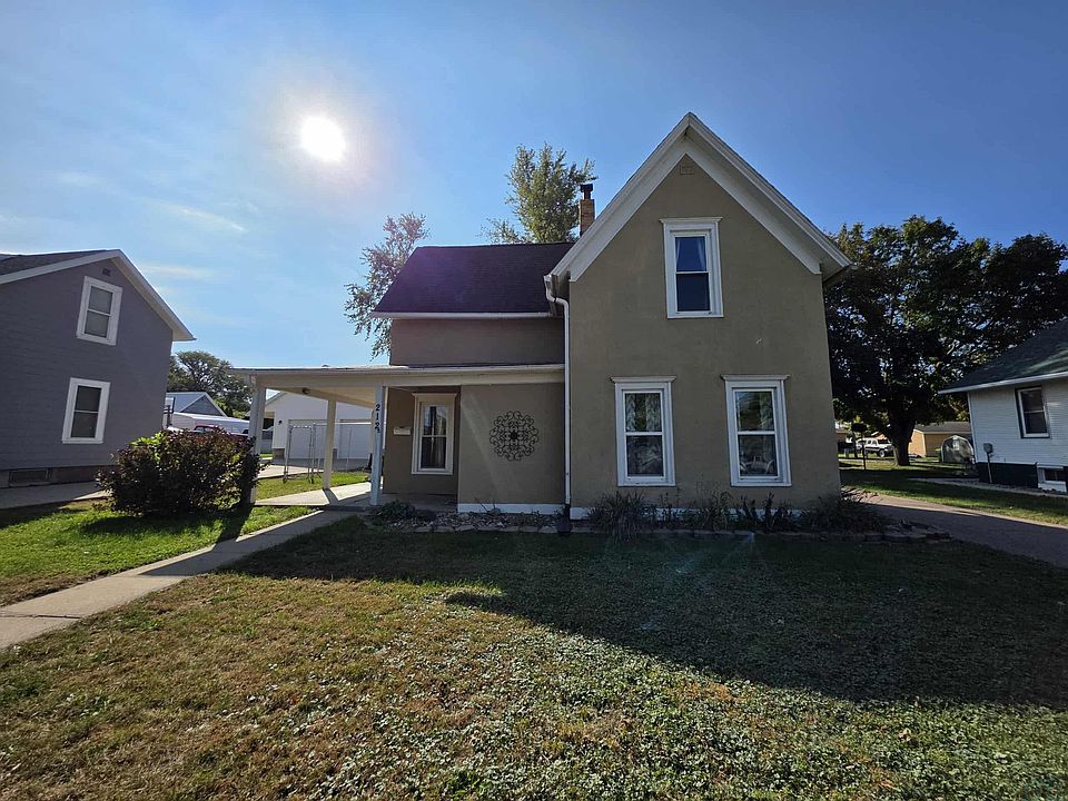 Charming and move-in ready, this 4-bedroom, 2-bath home offers the perfect blend of character, comfort, and space in a quiet Le Mars neighborhood. With 1,412 sq ft, a 2-stall garage, and a fully fenced backyard, it’s designed for both easy living and entertaining. Step inside to a bright main floor featuring a large living area, updated kitchen with wood accent wall, stainless-steel appliances, and a built-in breakfast nook that adds warmth and function. The main-floor laundry adds everyday convenience, while the upper level includes spacious bedrooms, beautiful hardwood floors, and a modern tiled bathroom with stylish finishes. Outside, enjoy a covered front porch with a swing, a spacious patio, and a fire-pit area that’s perfect for gatherings under the shade of mature trees. The fully fenced yard offers privacy and plenty of room for pets or play. Located near schools, parks, and all that Le Mars has to offer, this home is a great fit for anyone looking for a balance of charm, space, and value.