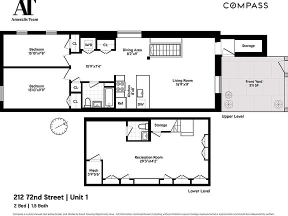 This 1600 square foot apartment home has 2 bedrooms and 1.5 bathrooms. This home is located at 212 72nd St #1, Brooklyn, NY 11209.