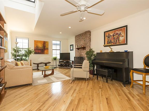 Welcome to your sanctuary in the heart of Downtown! This 3Br/2Ba home has all you are looking for. The open floor plan is perfect for entertaining; as your large KIT spills into your bright LR. The upgraded KIT boasts pure Oak cabinets, granite counters & SS appliances. While your spacious LR includes crown molding, 1 of 2 skylights & beautiful exposed brick fireplace. But the real prize is in your over 300sqft private rooftop terrace with NYC view! Plus W/D in unit, C/AC, HWF & close to all transportation!