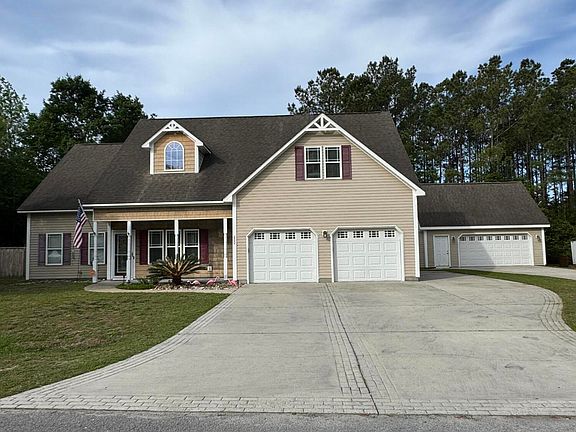 Additional upgrades include a tankless water heater for endless hot water, an irrigation system supplied by a well to keep your landscaping looking its best without effecting your water bill. Since we're outside, come take a look at the SECOND 2 car garage with additional storage space above. Plenty of room for a workshop, extra water toys, jet skis, vintage cars, you name it! And finally, your very own Deeded Boat Slip just across the way on the dock next to the community boat ramp. This boat slip is the largest one on the entire dock. It previously housed a lift, but the lift is no longer in place, but the opportunity is there. How amazing would it be to wake up in the morning and walk over to your boat and be on the water within minutes! Come take a look at this amazing Sneads Ferry home and make it your own!!