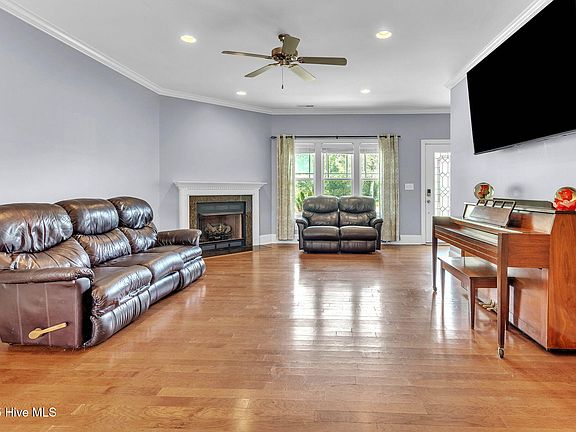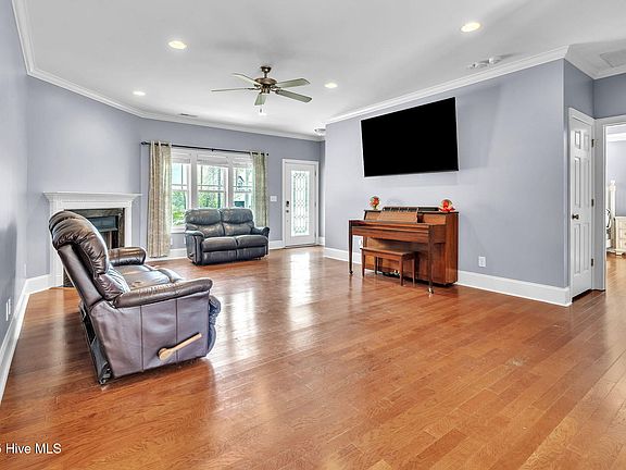 Need your own Boat Slip? And a boat ramp within walking distance from your front door? Do you need not just one garage but 2 full size 2 car garages? Built-in Safe? Need Space? This home has 2829 SF PLUS an additional 265 SF of finished bonus space!!! You've found the unicorn at 212 Anchor Lane, a beautifully upgraded home in the heart of Sneads Ferry with every detail intricately thought out. This spacious residence is perfect for those who love to entertain with a well-designed layout and gorgeous wood floors that allows the living room to flow seamlessly to the dining room and kitchen while keeping some definition of space. The kitchen is a true chef's kitchen complete with a 5-burner gas cooktop, double ovens, a convection oven µwave tucked into the center island, sleek finishes throughout including a range hood and under cabinet lighting. The walk-in pantry has plenty of space for dry goods and extra appliances. Just beyond the pantry is the large laundry room complete with additional cabinetry for even more storage and folding area as well as a built-in ironing board. Just across the hall is the entry to the garage as well as the half bath. On the opposite side of the house is the first-floor primary suite.This space is flooded with natural light as well as recessed lighting and tray ceiling. The en suite bathroom is spa worthy! With dual sinks, a jetted tub and large walk-in shower with pebble floor and dual shower heads!! The walk-in closet has plenty of room to store all your attire for all four seasons. Head upstairs where you'll first find a massive office with a sitting area and roomy closet, soaring ceiling with recessed lighting and ceiling fan. Head down the hall to find 2 more bedrooms each with large closets and a hall bath, with a secret door to an additional bonus room. More about that later. You are going to LOVE the bonus room!!! This room has so much space for so many options. A projector perfectly tucked away in what can be used a separate theater area. Pool table and wall mounted arcade games do convey. Come check out the wet bar!! Complete with sink, ice maker, and 2 beverage refrigerators! Need a massive BUILT-IN safe? You'll love the Fortress Security safe with digital numeric lock build right into the wall. Now check this out the bonus room has a bonus room!! A second bonus room sits just beyond the wet bar and beside the safe. It's cozy ship lap surrounds the dormered window, with a storage nook tucked away around the corner. Now for the best part, the secret door for direct access the hall bathroom! Just a tap opens the door that doubles as a shelf in hall bath. See photos to check out that awesome feature!