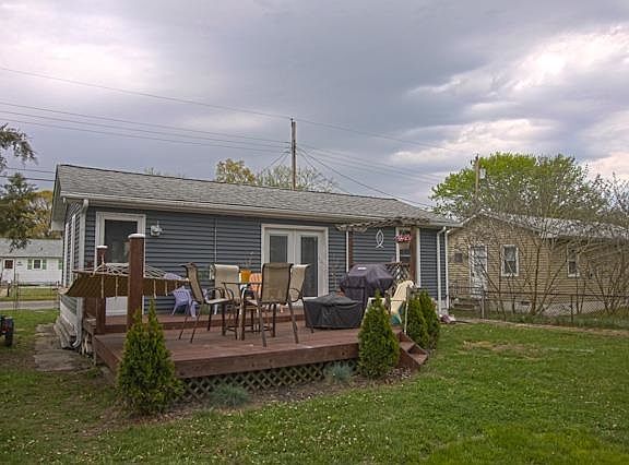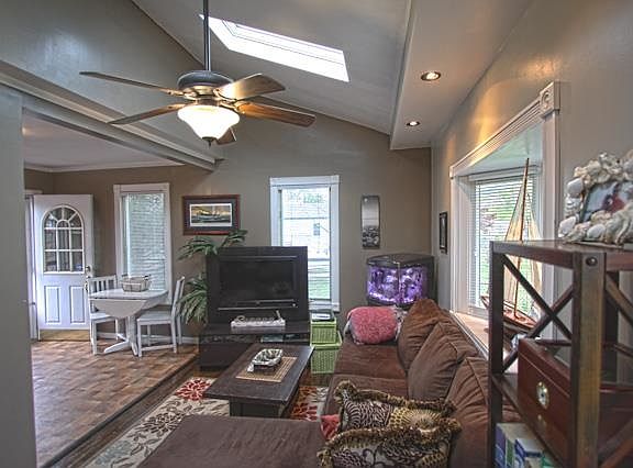 Completely renovated 2BR bungalow boasting modern finishes. This bright and airy home maintains hardwood flooring, stainless appliances, newer cabinetry, skylights, vaulted ceilings and opaque glass bedroom doors. Additional features include a laundry room with French Doors leading to the expansive deck, a new shed and a fenced yard. This low maintenance property also maintains vinyl siding and replacement windows. The Seller also just installed a new high efficiency wall air conditioning system.
