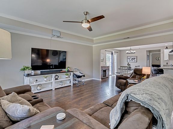 Location! Quiet neighborhood with NO HOA and 5 minutes from Ft. Stewart main gate! 3-sided brick home with huge fenced in backyard and NO CARPET! Walk into a designated foyer, open concept with spacious living room featuring a tray ceiling. Beautiful kitchen right around the corner with breakfast bar in the island and eat-in area. White cabinets, stainless appliances, recessed lighting, and trendy light fixtures. Split plan - primary suite off from the kitchen features a tray ceiling and primary bath has double vanities, garden tub and separate shower. Opposite side of the house has 3 more guest rooms, a guest bath, and spacious laundry room. Check out the 2 car garage as well! Enjoy entertaining in the huge private backyard! Nice patio and garden area. Schedule your showing today!