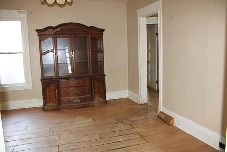Although this is ready for rehab there is still plenty of the original character present in the 1,990 sq ft, 3 BR, 2 bath Colonial home. There are some upgrades such as a newer forced air furnace, newer hot water tank, 200 amp electric service and newer PEX plumbing already present. The third floor offer plenty of storage or overflow living space, a small kitchenette set up on the second floor and a full basement. The exterior is mostly vinyl sided, has a small deck and a single stall garage with second floor storage. Taxes are $1220.34 per year.