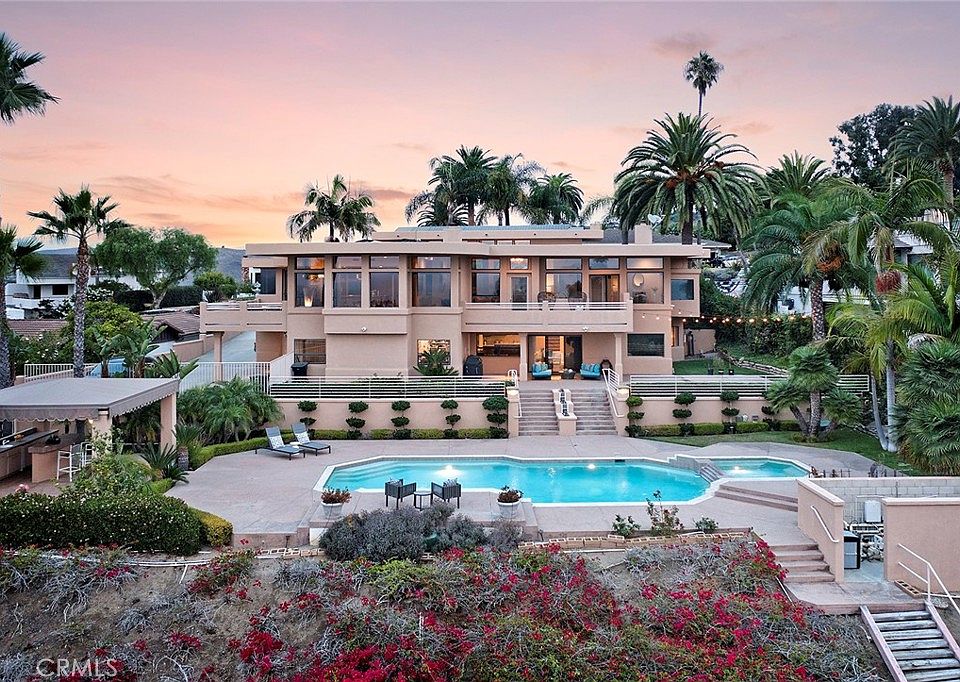 Sited on one of San Clemente’s most prestigious streets, this modern compound graces the desirable southwest-facing side capturing undeniable ocean views from nearly everywhere on the property. Rare to the market, resort-like homes of this caliber offering so many values are hard to come by. Stunning architecture, major ocean, island, & Dana Headland views, estate-like living spaces inside & out, private pool & spa terrace with ocean views, generous garages (EV charging), ample onsite parking, covered patios, proximity to downtown & the beach, underground power lines, and unique space from neighboring properties due to the oversized lots along this special ocean-view ridge. Custom built in 1989, the home features a very modern elevation and advanced floor plan, far ahead of its time. Inside, high ceilings and clerestory windows draw you into beautiful sunlit spaces. Every westerly window frames the emerald ocean horizon beyond. A dual-sided fireplace joins the formal living room and adjacent great room. An upgraded kitchen features custom cabinetry & ample storage, bar seating at granite counters, high-end stainless appliances including a nearly brand new built-in SubZero refrigerator, all with incredible views. Just off the chef’s kitchen, a dedicated laundry room, breakfast nook, access to huge upper dining deck, dining room, and a massive ocean-view family room. On the entry level, two suites including an ocean-view primary suite on its own wing with private deck. A dedicated powder bathroom completes the main level. These spaces are enhanced by large picture windows and very high ceiling plates. Offering dual stairwells, the ultimate guest wing below is a major value. Downstairs features its own kitchenette with bonus living or teen room, gym, ADU, indoor/outdoor covered California room, study, etc. Additionally, two bedrooms and bathrooms, and a private office all with easy access to the three-car garage. A generous pool & spa on the lower terrace features crisp views and enjoys a covered pool cabana. Other major bonuses include solar (home & pool), A/C, wired sound, storage, ample driveway parking, and panoramic preserved views. Truly an outstanding opportunity at a rare coastal estate of this size, beachy relaxed living in a desirable and friendly neighborhood, walkable to fine restaurants, nearby great beaches and 2.5 mile beach trail, world class surfing at Trestles a bike ride away, the pier and historic downtown.