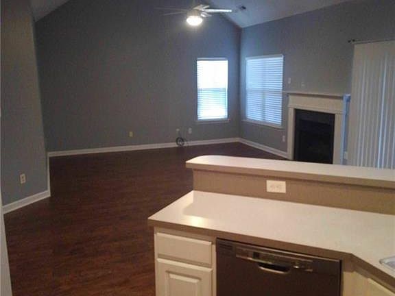 This lovely ranch home has an open floor plan with split bedroom layout. Laminate wood flooring throughout the whole home. Living room has high ceilings leading into the dining area (fireplace not functioning), separate dining room with tray ceiling, large kitchen with walk in pantry, good size laundry room, washer and dryer left for tenant convenience. Primary bedroom has 2 closets and good size bathroom with soaking tub and separate stand up shower, Secondary bedrooms share hall bathroom. Back yard has a good size deck and mature trees for shade and privacy. Amazing Community Amenities - 2 pools, tennis courts, basketball court, community pond, clubhouse, fitness room, walking trails, and playgrounds.