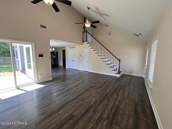 Beautiful 3 bedroom rental in Aragona Village! This 3 bedroom 2.5 bath home includes window covers, ceiling fans throughout, granite countertops, tile backsplash in the kitchen, and a spacious dining area with a large bay window. The living area features a vaulted ceiling with staircase leading up to the bedrooms. Upstairs are 3 bedrooms offering plenty of closet space. The primary suite is complete with 2 closets and large dual shower and vanity. 1 car garage and fenced in backyard. Pets negot, must submit pet screening.