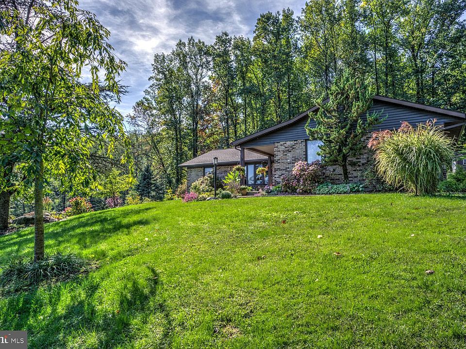 Rare opportunity to own this 1 floor living home on 1.5 acre lot with amazing views & privacy! This solid brick home with 2x6 construction has updates throughout the home! As you enter off the front porch into the foyer notice the beautiful white oak hardwood floors which run into the vaulted living room. Look up and you will notice the beautiful wood ceilings! The cozy wood burning fireplace is perfect for the cooler weather. Eat in dining area looks into the beautiful four seasons room. The kitchen has been updated and features new kitchen cabinets granite countertops & beautiful stainless steel appliances. The bedrooms are conveniently located on opposite ends of the house eat with their own bath. The master suite has an en suite with a large walk in closet, the 2nd bedroom has a large walk in closet and has access to the full hall bath. Convenient first floor laundry & mud room as you walk in from the 1 1/2 car garage. The lower level has a huge living room, 3rd full bath plus storage area. This area would be an ideal in law quarters or guest suite with a walk out separate entrance . The setting of this home is truly one of a kind, step outside the gorgeous 4 seasons room onto the deck and enjoy the beautiful perennial gardens and many fruit trees. The owners have edge this lot with evergreens to ensure years of privacy. Mechanicals have been well maintained with new central air, new hot water heater & recent gutter guard system. Don't miss your opportunity for private 1 floor living!