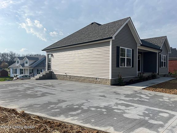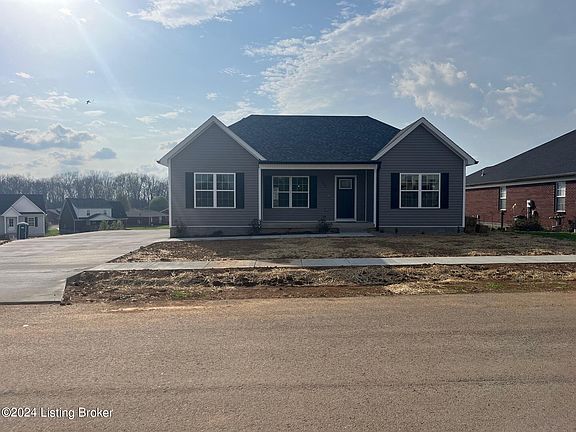 As you pull up to 212 Banjo Street you notice the extras. Nice concrete drive that could double as a patio. Enter the home up the steps into the combination mud/laundry room. Once inside the open/split area you find a nice kitchen with custom cabinets, bar and granite counter tops with a complete line of new Whirlpool appliances. 10 ft. ceilings in the living area. Primary bedroom has walk-in closet with solid wood shelving, bath with double sink. Additional 2 bedrooms have lots of closet space and wood shelving. Second bath has custom vanity and granite in both baths. Doors and fixture hardware is Black and the kitchen and baths have nickel finish hardware. Nice deck out the back door. great location close to Bardstown.
