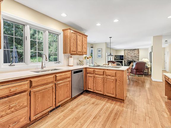 Discover the perfect blend of tranquility and elegance in this charming 4 bedroom Colonial, nestled in a picturesque landscape. Freshly painted and beautifully maintained, this impressive home welcomes you with a stunning wraparound mahogany porch, ideal for those relaxing evenings. Inside, you'll find an open floor plan featuring a grand floor to ceiling stone fireplace, complemented by hardwood and tile flooring throughout. A chef's dream, the spacious eat-in kitchen boasts stainless steel appliances, double ovens, and luxurious quartz countertops. Upgraded custom tiled baths showcase exquisite craftsmanship, while the primary suite spa-like bathroom features a gorgeous soaking tub, double sinks, and a large stylish tiled shower. Natural light pours in through the large upgraded windows, French doors, and sliding glass doors, inviting you to the outdoor patio. Step outside to your private oasis, complete with an inground pool, hot tub, and charming pool house, all set in a fenced yard that offers both peace and privacy. The professionally landscaped outdoor space is perfect for family gatherings or serene moments in nature. An attached oversized garage and paved driveway conveniently accommodates 10+ vehicles. Located in beautiful Southbury, you will enjoy easy access to parks, shopping, dining and major highways for a seamless commute. Don't miss the opportunity to make this magical retreat your new home!