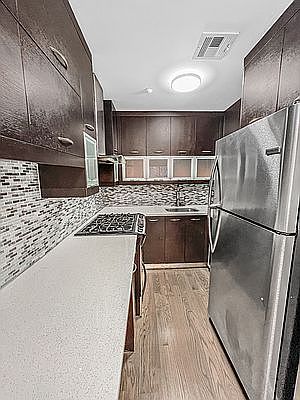 Large one bedroom apartment with condominium quality finishes, ensuite laundry, dishwasher, microwave. There's a lovely private balcony facing the back of the building which has a view of beautiful rock formations and trees. Oak Hardwood FloorsPrivate BalconyCustom Kitchen w/ Caeserstone countertopMaple Wood cabinetry with glass accentsStainless Steel Appliances including built in microwave, dishwasher & vented hoodIndividually controlled Central Air & Heat (tenants pay all utilities)Modern Bath w/ Subway Tiles & Dual Flush ToiletGreat Closet SpaceVideo IntercomEn suite Bosch Washer & Dryer This 3rd floor apartment is accessed by elevator. Tenants have a cardio gym in the basement and roof access. Ft Tryon Park is located next to the building. The A and 1 trains are a block away (20 minutes to Midtown). Many stores and restaurants in the neighborhood. Available Now Guarantors including corporate and out of state guarantors are welcome. Tenants are responsible for heat, hot water, cooking gas and electricity. Broker fee