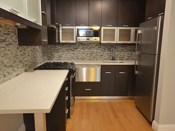 Beautiful one bedroom apartment in a modern building with condominium quality finishes and in unit laundry. Roof Deck access and a cardio gym are located in the building. Oak Hardwood Floors Custom Kitchen w/ Caeserstone countertop Maple Wood cabinetry with glass accents Stainless Steel Appliances including built in microwave, dishwasher & vented hood Individually controlled Central Air & Heat with very efficient systems (tenants pay all utilities) Modern Bath w/ Subway Tiles & Dual Flush Toilet Great Closet Space Video Intercom This unit is located on the first floor and has limited sunlight. Tenants have access to a large roof deck as well as a cardio gym in the basement. Inwood Hill Park is located next to the building and Isham Park is one block away. The A and 1 trains are located steps away (20 minutes to Midtown). Many stores and restaurants in the neighborhood. Available Mid-April Guarantors Accepted NO FEE
