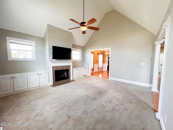 Beautiful custom home in exclusive Bluewater Cove. Gated community. 3 bedrooms. 2 full baths. 2 half baths. Large open floor plan. Formal dining room. Primary suite is on first level. Two (2) additional bonus rooms, perfect for home office, theater room, game room, etc. 2-car garage. Large yard. Amenities include boat ramp, day dock, clubhouse, community pool. Lawn/landscaping included in the rent. No smoking permitted on the premises. One (1) non-aggressive pet will be considered w/pet fee and deposit. Available July 1st. 212 Bluewater Cove, Cape Carteret, NC 28584.
