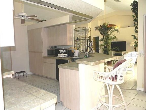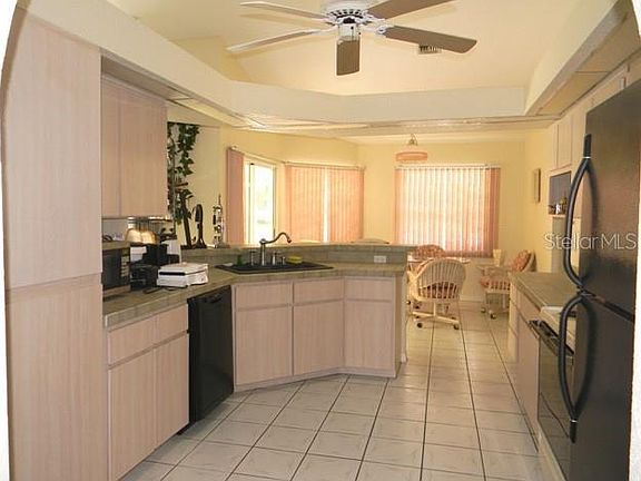 HOME BOOKED FROM JANUARY 1, 2025 TO MARCH 31, 2025 HOME IS AVAILABLE - APRIL 2025 TO DECEMBER 2025 Spacious Open Floor Plan: 3 bedroom, 2 bath 2 car garage with Pool completely enclosed with screening. Kitchen has all updated appliances with breakfast nook eating area. Living room has Tommy Bahama Style Florida Furnishings, flat screen T.V. There is a formal Dining Room with Rectangular Glass table & 6 Chairs. There are desks with computer equipment on an all modern L-Shaped Desk. Master Bedroom Suite is super large with King Size bed, round table & 2 chairs all rattan style furniture. Guest Bedroom 1 has Queen Size Bed and Guest Bedroom 2 has a day bed with trundle style bed as well as additional sofa bed. Guest Bath has tub/shower combo: Master bath has deep garden style tub, separate walk in shower with L-Shaped double sink vanity: All Ceramic tile in the living room, dining room, kitchen and both bathrooms. Carpets in all 3 bedrooms. Pool Deck is covered so you can still sit outside when raining, then can sit and lounge in the sun on the pool deck. Lounging Chairs and sunning chairs on pool deck included.