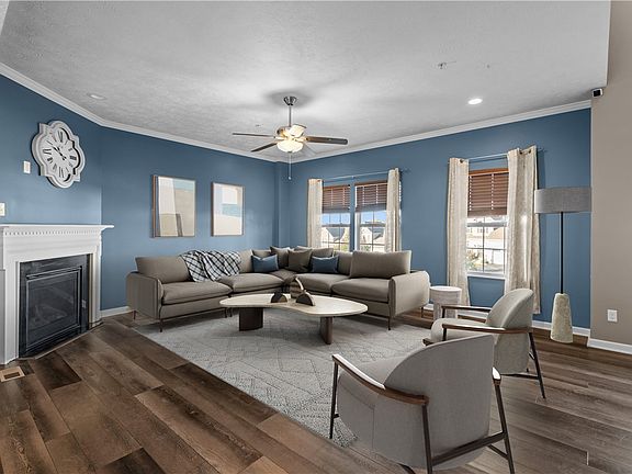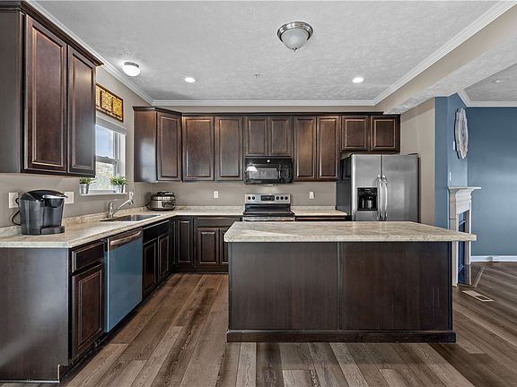Open floor plan featuring 9ft ceilings on main level. Dining room area shares a center island with the kitchen which features 42" birchwood cabinets & stainless appliances. Corner gas log fireplace and wall of windows in the living room. Owner's suite has a walk-in closet and private bath with ceramic shower, glass doors, and double vanities. Two additional nice size bedrooms share full bath. Upgraded trim package. Newer back patio to level yard. Huge garage for vehicles and storage, level extended driveway. HOA covers grass mowing, annual shrub trimming, mulch, lawn treatment.